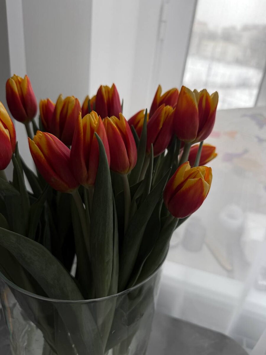 А там… огромная ваза. Настоящие тюльпаны. Много. Красиво.