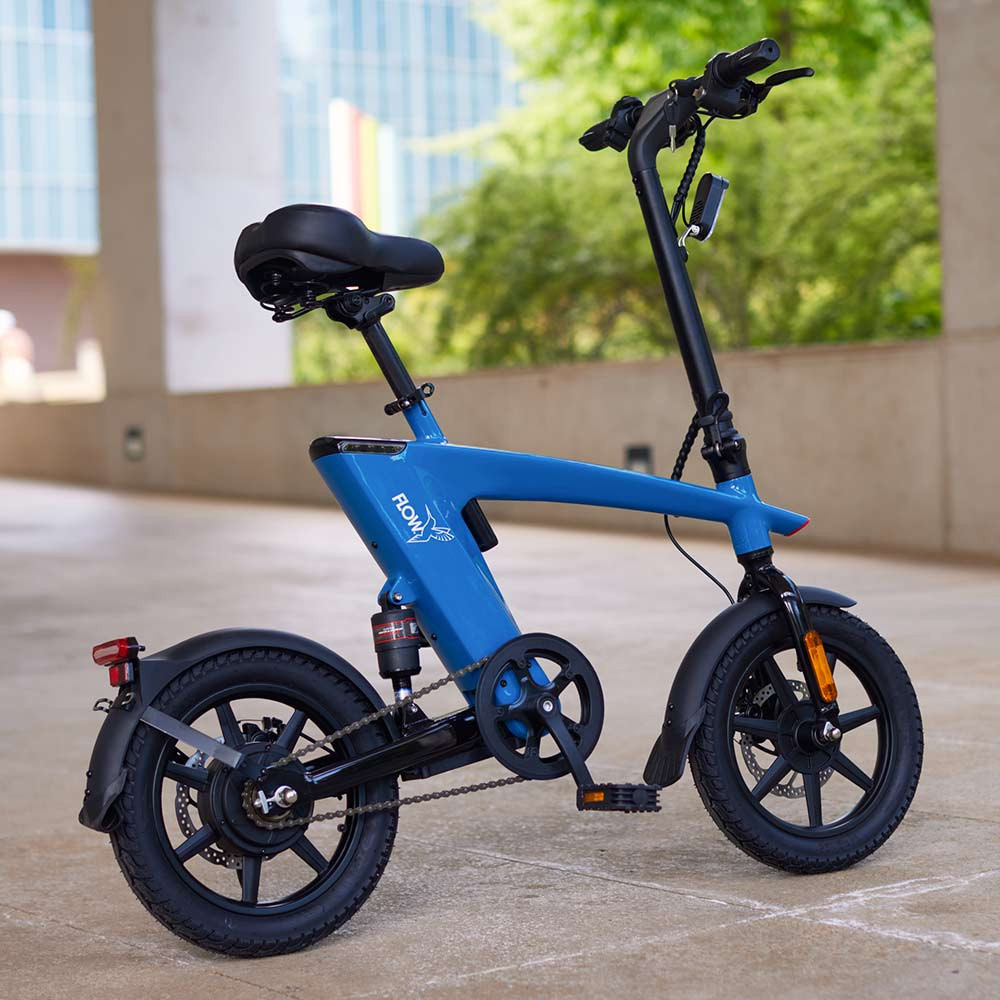 Складной электровелосипед Flow District 5 имеет необычный дизайн .