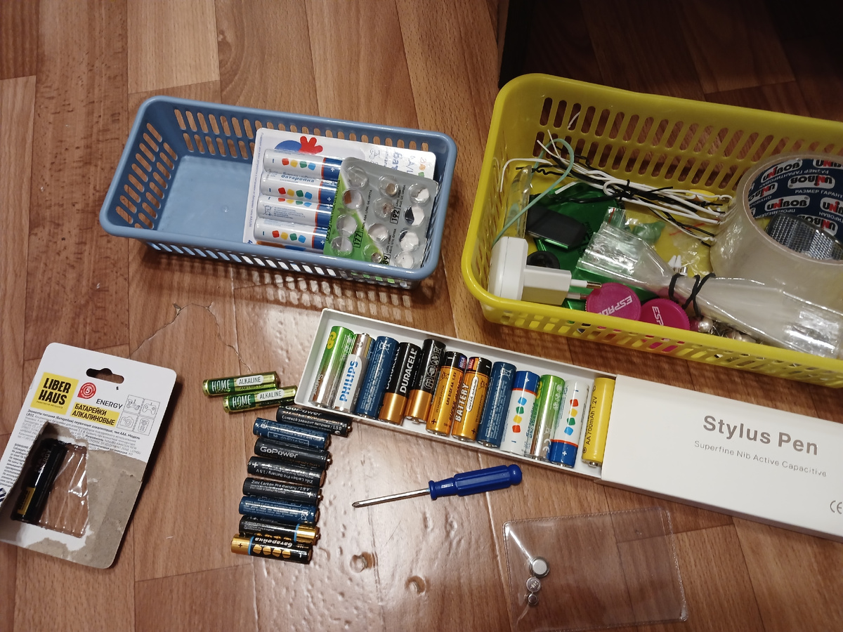Во вторник я залезла в ящик, куда мы складываем всякую мелочь . Там и канцелярия, которая детям не нужна, батарейки, временные бумаги и другая ерунда. Нашла подходящую коробку под батарейки, посмотрите как классно. Все проверила.