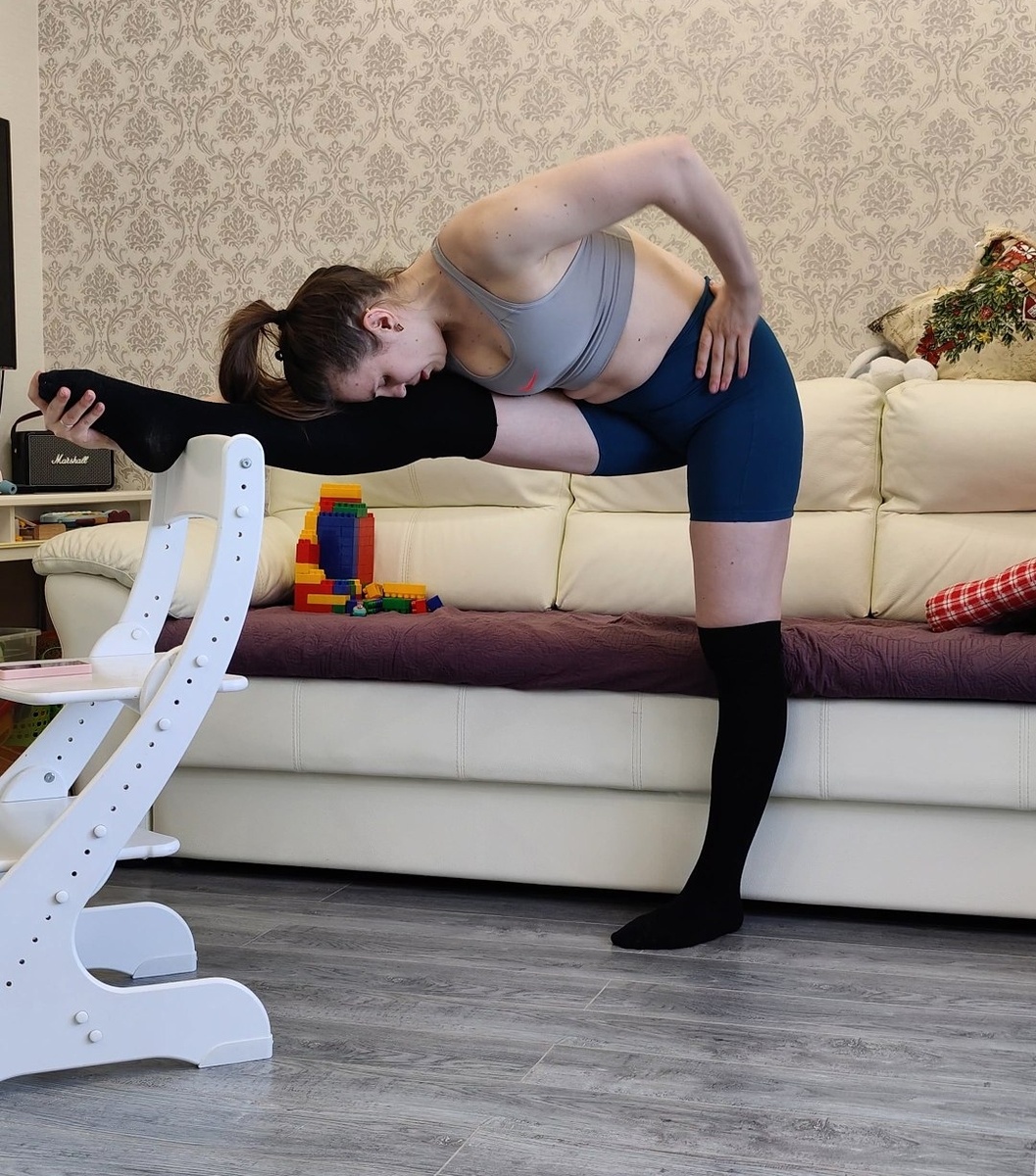Из достижений: могу подниматься по лестнице по очереди двумя ногами. Из недостижений: не могу спускаться по лестнице двумя ногами. Положение на носке с согнутым поданным вперёд коленом просто импусибль какой то. Но если хочешь что то смочь, надо это пробовать. Поэтому репетирую.