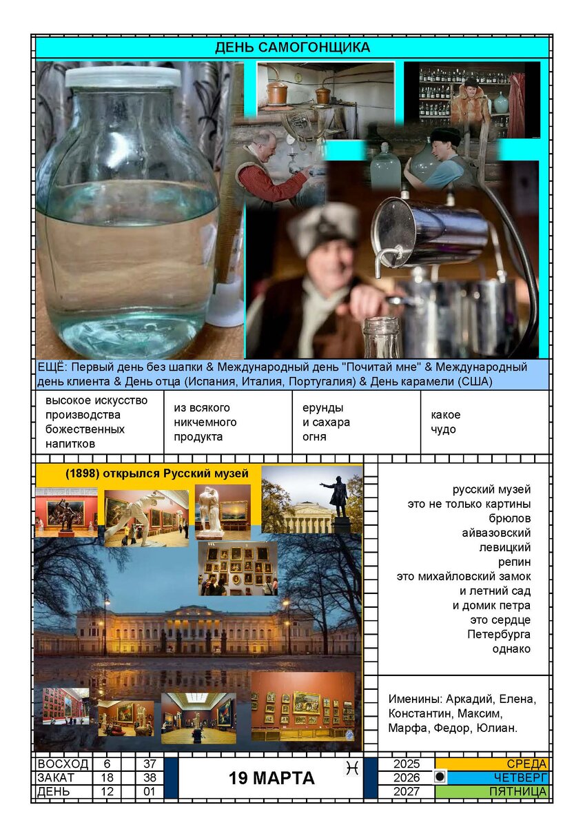 КАЛЕНДАРЬ 19 МАРТА