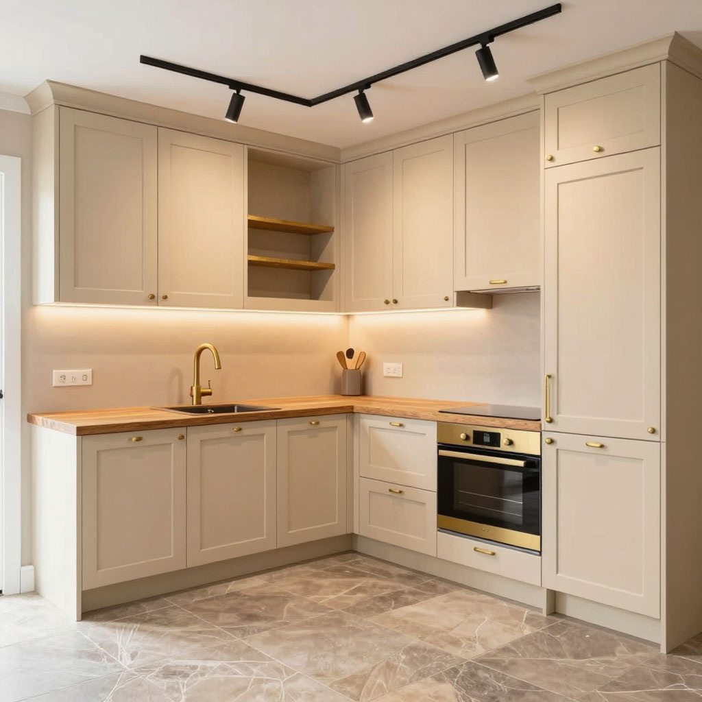 Как избежать: Требуй, чтобы замерщик приезжал после выравнивания стен штукатуркой, но до чистовой отделки. Если стены кривые, в проекте должны быть заложены регулируемые ножки и планки, либо подрезка столешницы по месту.