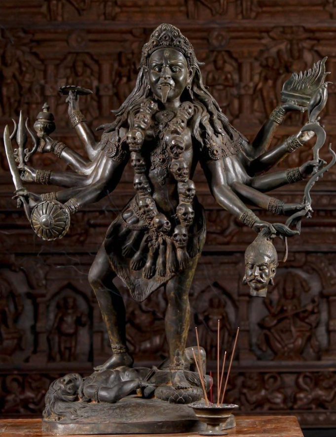 В древней Индия существовала богиня, чьего имени боялись и одновременно просили о помощи. Ее изображали с ожерельем из черепов и окровавленным оружием — и при этом считали защитницей. Приветствуем на канале "Обратная сторона истории|Легенды" Ее звали Кали. Согласно древним мифам, Кали появилась в тот момент, когда мир оказался на грани разрушения. В легендах рассказывается, что демоны захватили власть и стали угрожать богам и людям. Тогда из гнева богини Дурга возникла Кали — воплощение ярости и силы. Она вышла на поле битвы, чтобы остановить зло. Ее описывали так: Кали не просто сражалась — она уничтожала все, что угрожало миру. На первый взгляд Кали кажется воплощением ужаса. Но в этом и заключается парадокс. Несмотря на пугающий образ, она считалась защитницей. В индуистской традиции Кали: Ее сила направлена не против людей, а против того, что разрушает мир. Поэтому к ней обращались не только в страхе, но и с надеждой. Образ Кали резко отличался от привычных представлений о богинях.