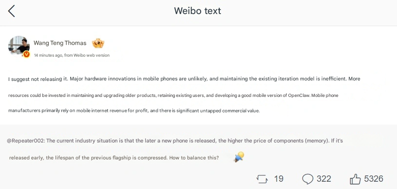 Wang Teng — бывший топ-менеджер Xiaomi, эксперт по стратегии продуктов. Выступает за фокус на ПО и долгосрочную поддержку устройств вместо частой смены аппаратной части.