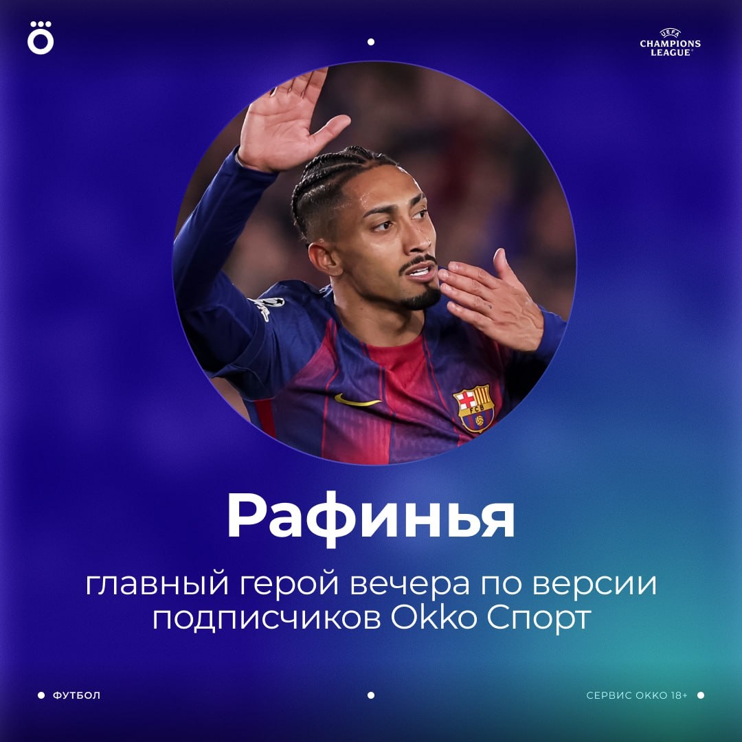 👏 2 гола, 2 ассиста, звание MVP матча. Рафинья — безоговорочный главный герой сегодняшнего вечера!