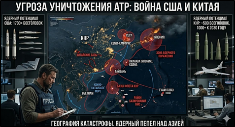 В случае столкновения США и Китая Азиатско-Тихоокеанский регион станет ареной применения крупнейших арсеналов в истории. Цифры говорят сами за себя: у Вашингтона развернуто более 1700 ядерных боеголовок, а Пекин, по данным западных разведок, к 2030 году увеличит свой запас до 1000 единиц. В зоне риска оказываются не абстрактные геополитические интересы, а конкретные территории с высочайшей плотностью населения, где конфликт из-за Тайваня или спорных островов может перейти в «ядерную фазу» за считанные дни. Главными мишенями первых ударов станут военные базы, густой сетью покрывающие регион. На японской Окинаве базируется крупнейшая авиабаза США Кадена, в Южной Корее расположен Кэмп-Хамфрис с десятками тысяч солдат, на Гуаме стоят стратегические бомбардировщики, а на Филиппинах американцы получили доступ к новым объектам прямо напротив Тайваня. Китайские ракеты средней дальности, такие как DF-26 (прозванные военными экспертами «убийцами Гуама»), нацелены именно на эти узлы. Для Японии,