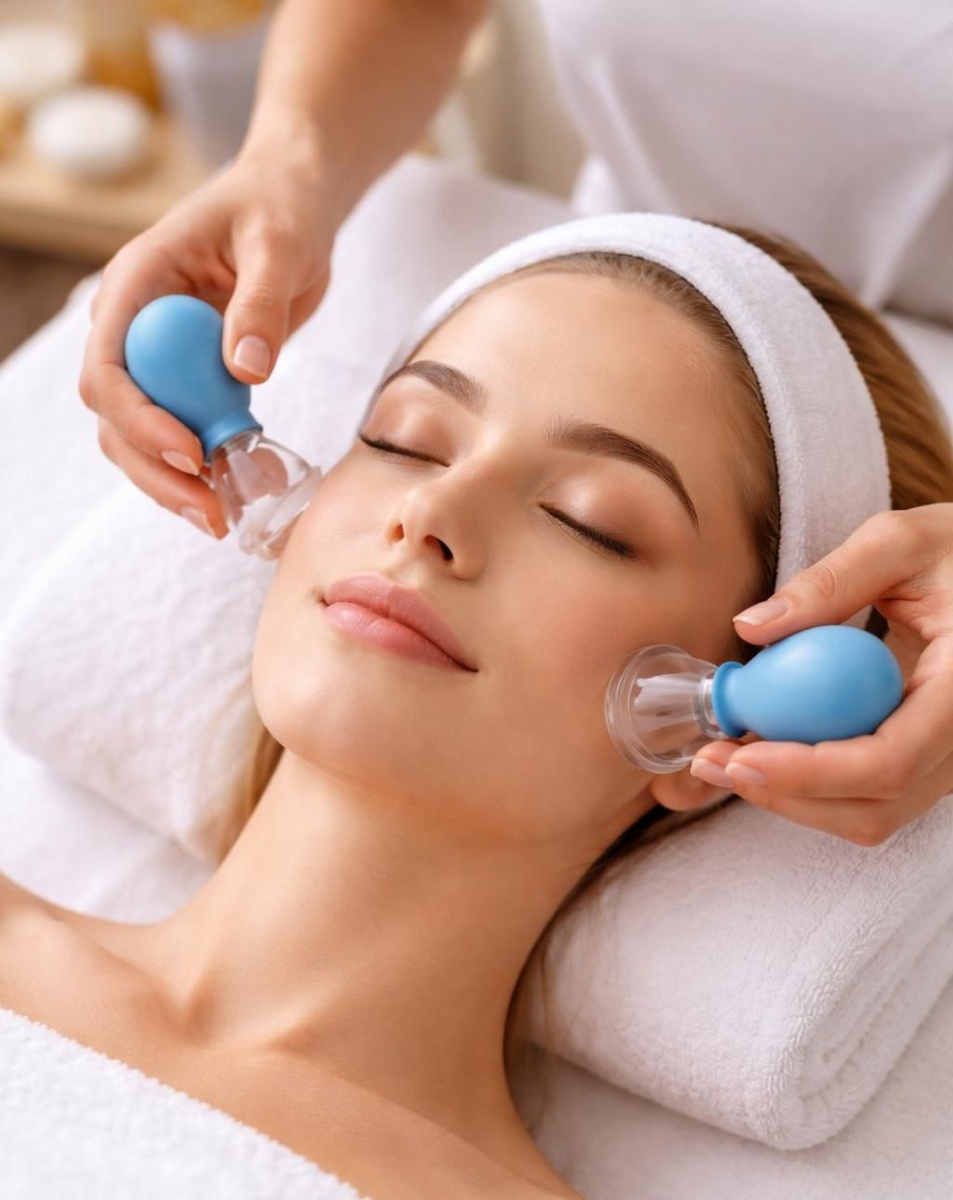 Специальные банки. Для лица нельзя использовать те же банки, что и для тела. Они должны быть маленькими (диаметр 1-2 см), из мягкого медицинского силикона . Обычно продаются в наборах по 2 штуки. Силикон идеален для нежной кожи лица — он эластичный, хорошо скользит и не травмирует .