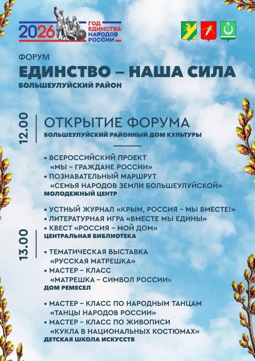 В Ачинском муниципальном округе пройдет череда открытых форумов, посвящённых культурному многообразию народов России и сохранению традиций. Один из форумов состоится 21 марта в Большом Улуе. Программа мероприятия: 🕛 Открытие форума: 12:00 📍 Место: Большеулуйский районный Дом культуры 🔹 13:00 — Работа площадок форума: 📌 Всероссийский проект «Мы – граждане России», познавательный маршрут «Семья народов земли Большеулуйской» (Молодежный центр); 📌 Устный журнал «Крым, Россия – мы вместе!», литературная игра «Вместе мы едины», квест «Россия – мой дом» (Центральная библиотека); 📌 Тематическая выставка «Русская матрешка», мастер-класс «Матрешка – символ России» (Дом ремесел); 📌 Мастер-класс по народным танцам «Танцы народов России», мастер-класс по живописи «Кукла в национальных костюмах» (Детская школа искусств). Приглашаем жителей округа стать частью значимого события!