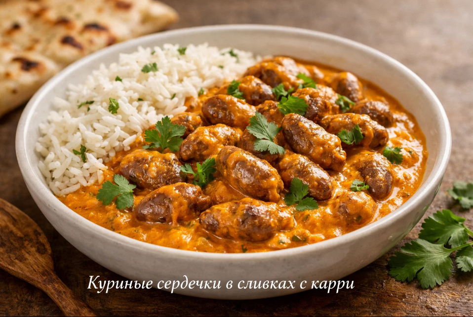 Есть такие рецепты, на которые натыкаешься случайно, а потом готовишь снова и снова. У меня так вышло с куриными сердечками в сливочном соусе с карри. Казалось бы, субпродукт — ничего особенного. Но стоило однажды добавить в сковороду ложку карри и плеснуть сливок, как на кухне повис такой аромат, что домашние начали заглядывать с вопросом «а что это так пахнет?» ещё задолго до того, как блюдо оказалось на столе.