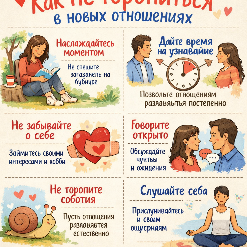 Подписаться/Читать полностью Иногда пустота давит так сильно, что хочется заполнить её кем-то. Новый человек, новая эмоция, новые впечатления — всё это кажется спасением. Но именно здесь кроется риск — спешка. Я долго училась не торопиться. Первые попытки после развода часто выглядели одинаково: кто-то проявлял внимание — и в голове уже появлялись мысли: «Может, это тот самый человек? Может, это шанс снова быть счастливой?» Но спешка не помогает. Она мешает слышать себя, разглядеть свои чувства и понять, чего ты на самом деле хочешь. После долгого брака мы привыкли жить рядом с другим человеком, делить привычки, планы, пространство. И когда это исчезает, естественное желание заполнить пустоту может привести к поспешным решениям. Понимание, что любые эмоции — это нормально. Тоска, радость, волнение — всё это естественные реакции. Но важно не позволять им диктовать действия. Я помню один случай. После нескольких месяцев развода я познакомилась с мужчиной на конференции. Общение было лёгк