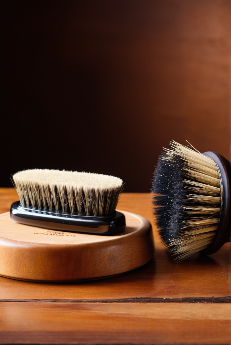 - Щетка для гладкой кожи: натуральный ворс (конский волос, свиная щетина) для удаления грязи и щетка для полировки (козий волос) для придания блеска