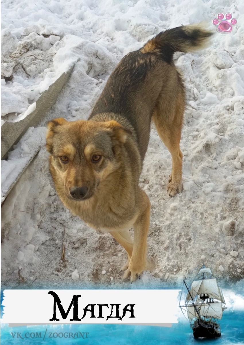 Маленьким щенком Магду нашли на улице. Кто-то очень бессердечный просто оставил её около мусорных контейнеров и спокойно ушёл. Сейчас ей примерно годик, значит почти год этот нехороший человек кушает, спит, живёт, возможно, воспитывает детей, говоря им, что такое хорошо и что такое плохо...
