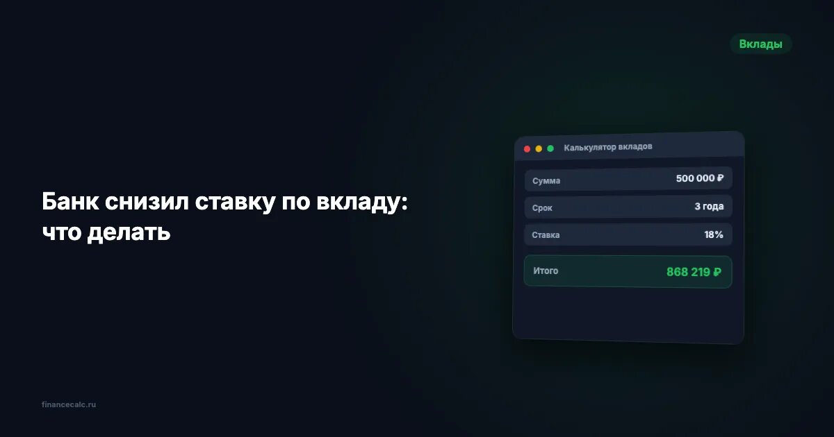 Рассчитайте доход по вашей сумме в калькуляторе вкладов — введите текущую ставку и сравните с прогнозной.