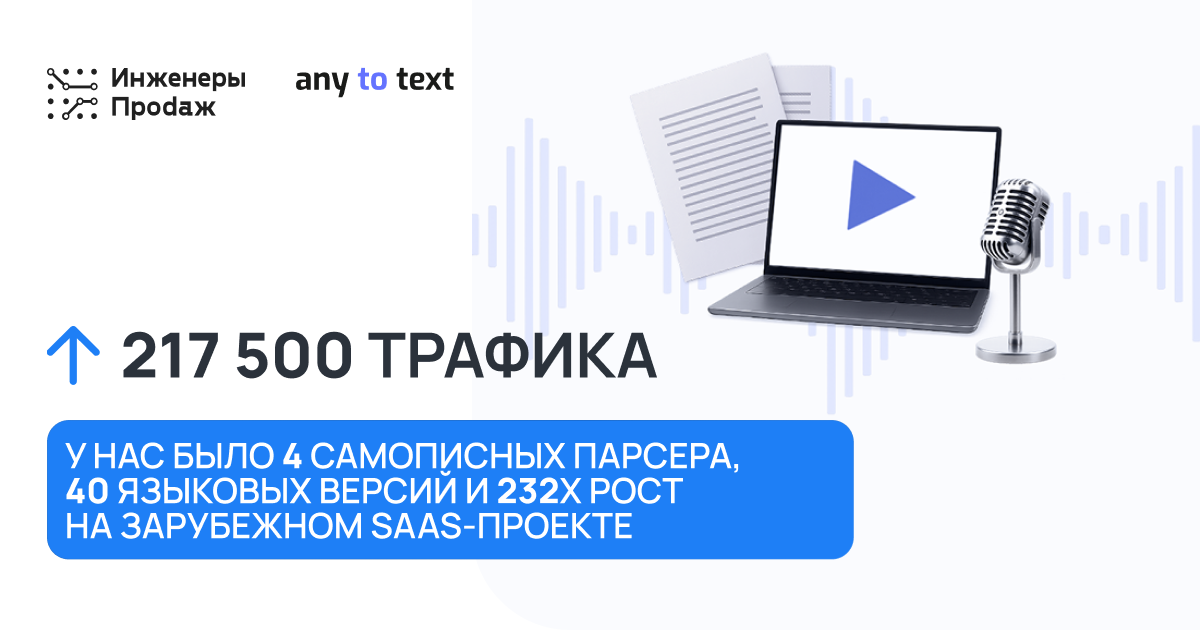 Рассказываем, как с помощью нестандартных подходов и самописных инструментов мы увеличили трафик более чем в 230 раз за 10 месяцев в нише транскрибации за рубежом.