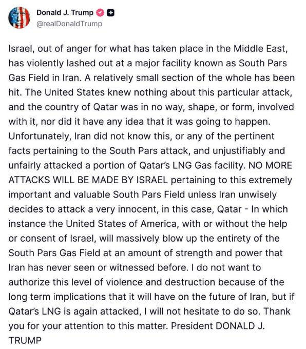 Blasts Israel for smashing world's biggest gas field in Iran tonight