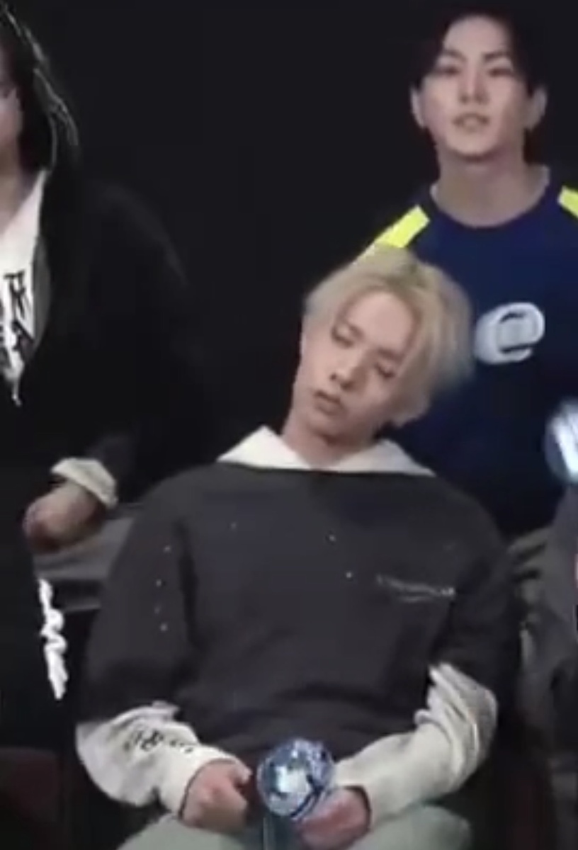 2. Честно говоря, прежде чем быть айдолом, он все же человек и просто работник, так что он выглядит чертовски измотанным. Я бы тоже немного отключалась, когда слишком устала, но не могу уснуть.