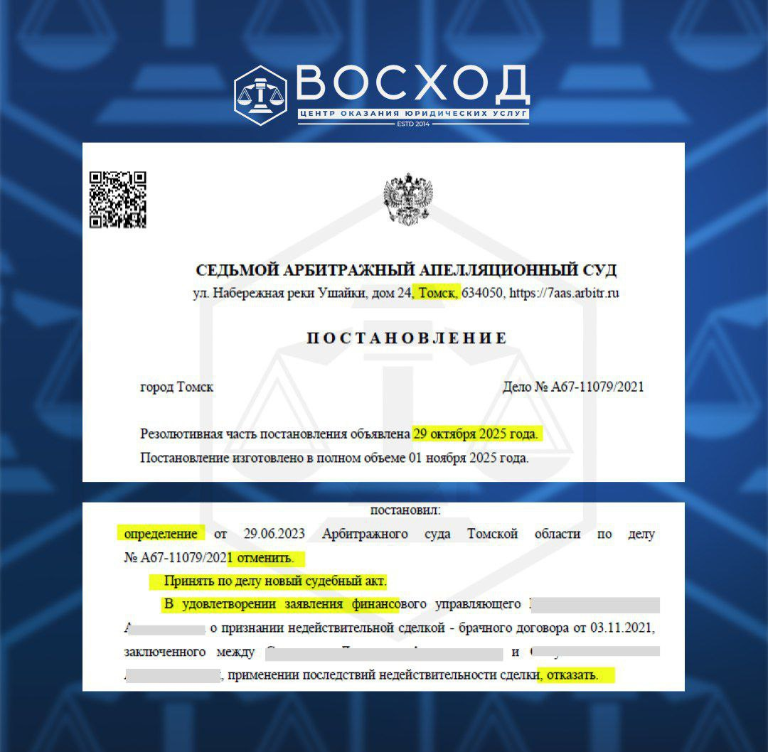 Кейс: банкротство 🚗 Купила машину, а через 2 года её арестовали за долги бывшего мужа Реальная история нашей клиентки, которая чуть не лишилась автомобиля из-за банкротства экс-супруга. Как было дело: За год до развода они с мужем заключили брачный договор. Разделили имущество. После этого женщина взяла кредит и купила машину — на себя, на свои деньги. Через 2 года после развода она узнаёт, что её автомобиль арестован. Выставлен на торги. Что случилось? Бывший муж прошёл банкротство. Кредиторы оспорили брачный договор, назвали его фиктивным. Суд признал машину совместной и включил её в конкурсную массу. Вся процедура прошла без её участия — она просто не знала о судах. Решение вступило в силу. ⚡️Что удалось сделать нам: • Восстановили срок на подачу апелляции • Провели 5 заседаний в апелляционном суде • Доказали, что машина куплена после брачного договора и на личные средства Итог: автомобиль признали личной собственностью клиентки. Долги бывшего мужа к ней не имеют никакого от