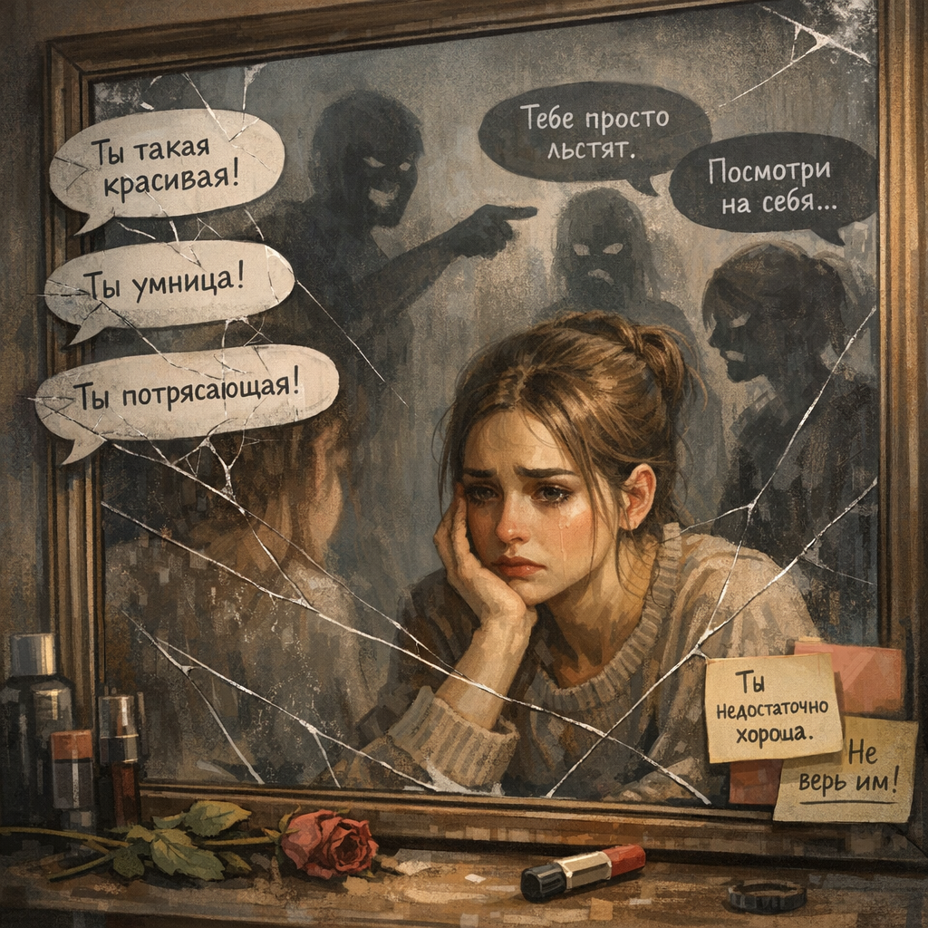 Я долго жила с этим недоверием. Даже простое «ты хорошо выглядишь» вызывало внутреннюю проверку: «Правда ли? Не преувеличивает ли он? Не хочет ли что-то получить?»