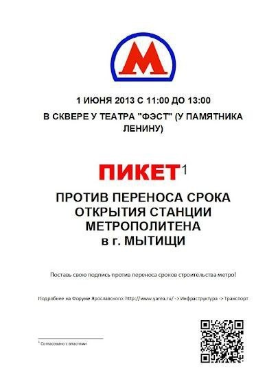 Сразу вспомнился митинг в 2013 году против переноса сроков строительства метро в Мытищах, которое неоднократно в те годы обещали Воробьев и Азаров на фоне своих предвыборных компаний.