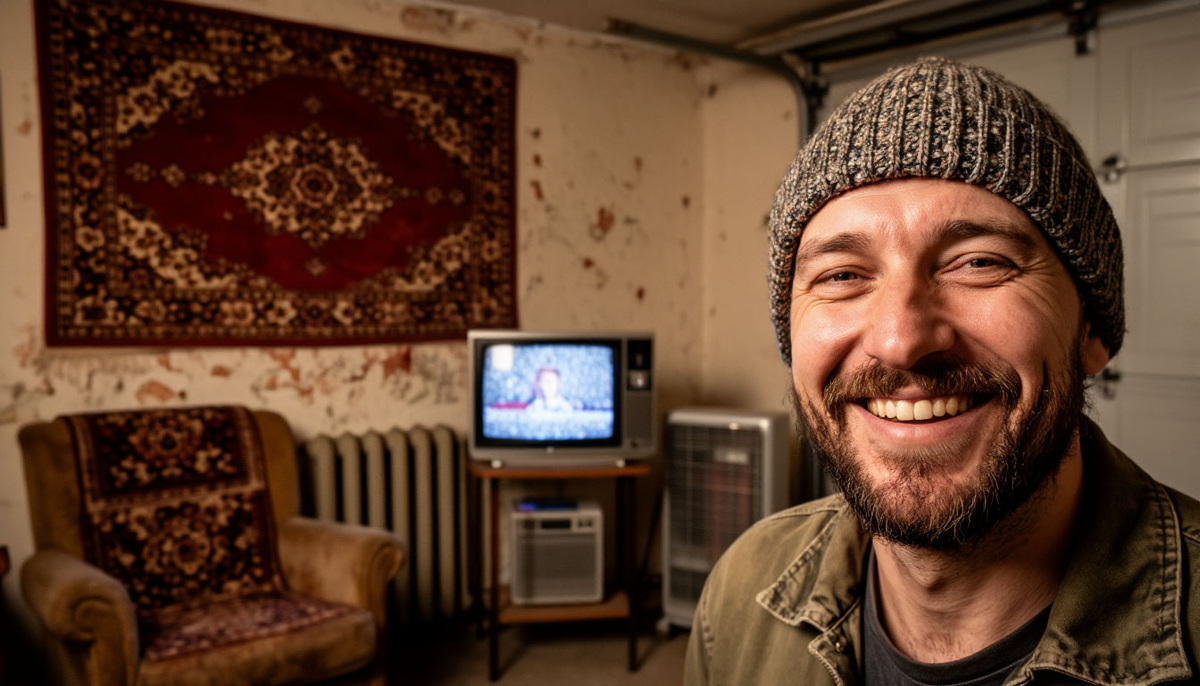То, что я увидел, поразило меня до глубины души. Гараж выглядел не как помещение для машины, а как хорошо обставленная квартира. На стенах висели советские ковры с замысловатыми узорами — они, похоже, служили не только украшением, но и дополнительной изоляцией. В углу стоял небольшой диван, рядом — старое, но уютное кресло. Между ними — журнальный столик, на котором красовался современный телевизор с плоским экраном. Рядом с диваном — небольшой шкафчик, а у стены — компактная тумбочка с микроволновкой и чайником.