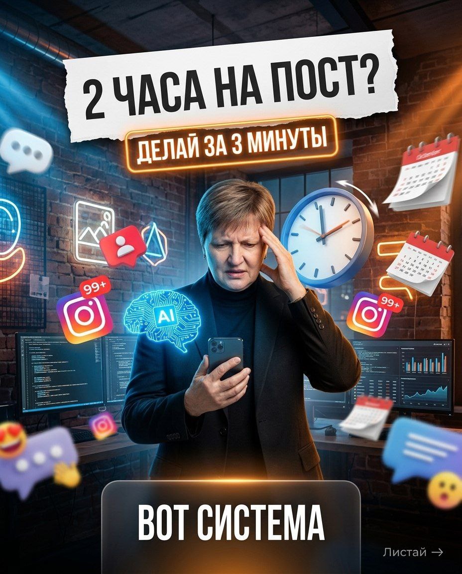 ? А можно за 3 минуты. Знакомая история: села делать пост, а в итоге потратила полвечера на выбор картинки и текста. И всё равно не нравится. Это в прошлом. Собрала пошаговую систему, как с помощью AI и шаблонов делать контент быстро, без выгорания: → Шаг 0: Идея за 30 секунд → Шаг 1: Текст пишет AI → Шаг 2: Хук, который цепляет → Шаг 3: Визуал без дизайнера → Шаг 4: Сборка в 5 кликов → Шаг 5: Финальный чек «живости» Добавляйся в "Умный город Ai" и сможешь так же. https://t.me/Neirociti_bot?start=ref_68