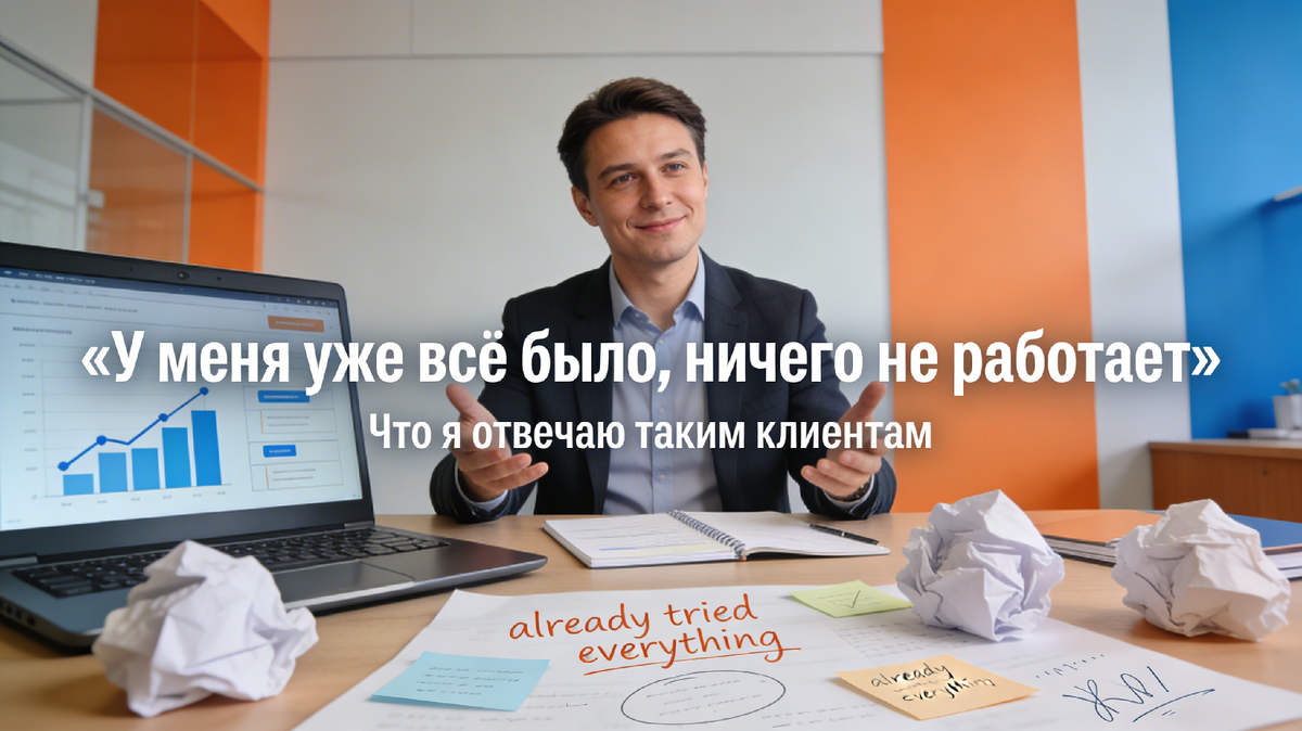 Знаете, что я вижу в этот момент? Я вижу человека, который потратил кучу денег и не получил результата. И самое обидное - он уже почти поверил, что дело в нём или в рынке.