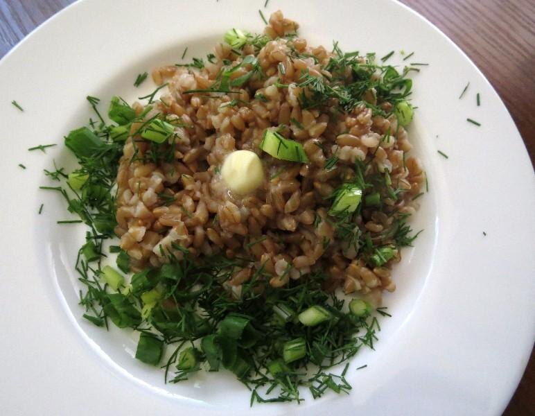 Готовая каша, не склеивается ,а получается рассыпчатой. Можно добавить сливочное масло или то, которое вы любите. Посыпать зеленью. Хороша полба и с грибами,но это уже другая история .