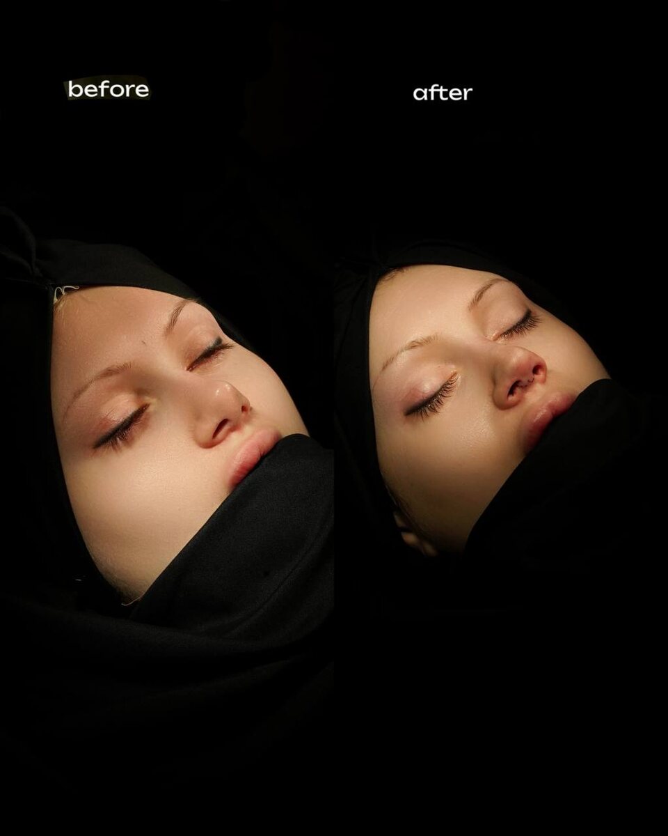 Мы бережно поработали над формой: убрали всё лишнее, смягчили кончик, сделали его более изящным и соответствующим лицу. Никакой «кукольности» —