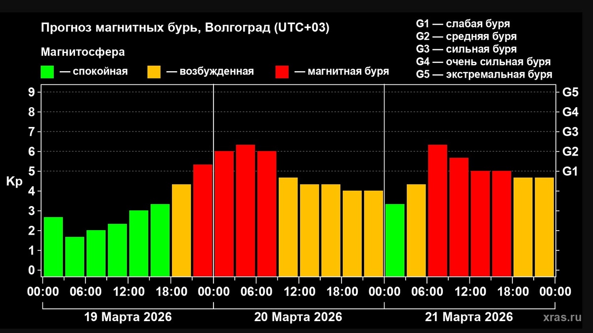 Продолжительная и мощная магнитная буря начнется на Земле 19 марта. Ближе к ночи произойдут геомагнитные скачки, которые могут повлиять на работу энергосистем. Фото: Лаборатория солнечной астрономии ИКИ и ИСЗФ Волгоградцы могут почувствовать воздействие сильной магнитной бури уровня G2 сегодня ночью. Влияние на обстановку оказали несколько выбросов плазмы и корональные дыры, которые находятся на обращенной к Земле стороне Солнца. По данным лаборатории солнечной астрономии ИКИ и ИСЗФ, геомагнитные возмущения в этот раз могут быть особенно продолжительными – почти 6 суток, с 19 по 24 марта. Высока вероятность того, что пики активности произойдут в вечернее и ночное время. Смотрим «Вести. Волгоград»: smotrim.ru/Volgograd Подписывайтесь на наши страницы в соцсетях: Telegram, ВКонтакте, Одноклассники, Дзен, MAX
