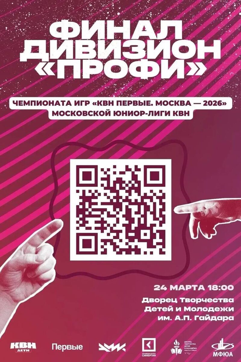 ! 🎭 24 марта — вечер, когда на сцене встретятся сильнейшие команды дивизиона «ПРОФИ» Чемпионата игр «КВН ПЕРВЫЕ. МОСКВА — 2026». 🎤 Яркие выступления, точные шутки и атмосфера настоящего финала — здесь решится, кто станет лучшим. 📍 24 марта, 18:00 Дворец творчества детей и молодёжи имени А.П. Гайдара 🎟 Приходите поддержать команды и зарядиться отличным настроением! Больше полезного контента, эксклюзивных материалов и возможность задать вопрос — в нашем МАХ. #ДОНМ #ШколыКолледжиМосквы