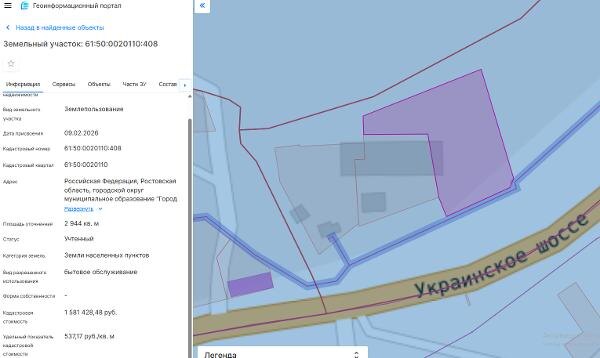 Название: Земельный участок с кадастровым номером 61:50:0020110:408 общей площадью 2944,0 кв.м с местоположением: Российская Федерация