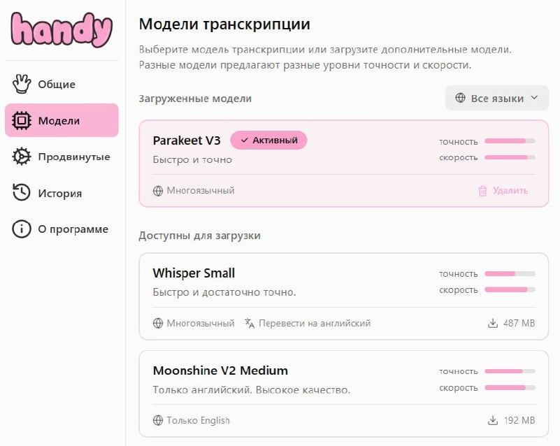 Инструмент решает задачу: быстро надиктовать текст в любое поле ввода. В браузере, мессенджере, редакторе, где угодно - вместо того, чтобы печатать. Экономит часы жизни и называется Handy.🕘 Как работает 🔘Зажимаете горячую клавишу → говорите → отпускаете. 🔘ИИ проводит распознавание. 🔘Текст сам появляется там, где стоит курсор. Чем привлекательно 🟣 Полная приватность - голос никуда не отправляется, всё обрабатывается на вашем компьютере. 🟡 Бесплатно - навсегда, без подписок и облачных тарифов. 🟢 Работает офлайн - не нужен интернет и аккаунт. 🔵 GPU-ускорение - если есть видеокарта, работает ещё быстрее. 🖥 Windows, macOS, Linux - все платформы. Под капотом Whisper и Parakeet - те же технологии, что в платных сервисах. Качество распознавания хорошее, и на русском тоже.🇷🇺 Программа удаляет паузы и тишину автоматически, в тексте не появляются лишние слова. История создания Автор сломал палец, попал в гипс и не мог нормально печатать.😀 Попробовал существующие прило