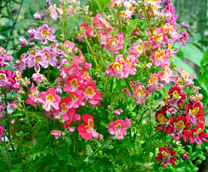 Бордюры и клумбы: Яркие, пышные кустики схизантуса станут прекрасным украшением бордюров и цветочных клумб, создавая эффект живого ковра.