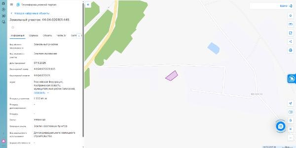 Название: Кадастровый номер44:04:020101:445, площадь 1500 кв.м, Местоположение: Костромская обл., Галичский район