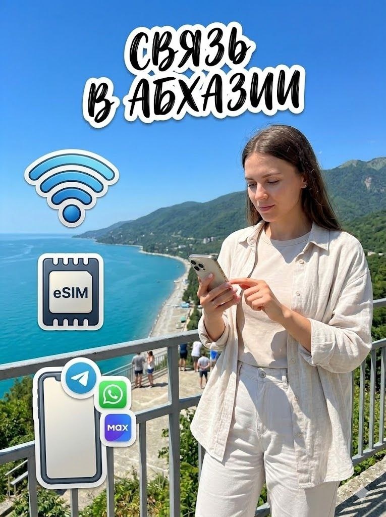 🌐📲 Собрали всю нужную информация про мобильную связь, интернет и вайфай 👇 ❗ Российская SIM в Абхазии работает в роуминге: дорогой интернет, платные входящие, деньги улетают быстро. По опыту туристов - можно потратить несколько тысяч рублей за пару дней. 🚫 Важно: после прохождения границы поставьте на российской SIM режим авиа, иначе списания будут почти сразу. 📍 У границы (Псоу, Цандрипш) иногда ловит российская сеть и может работать как дома, но это не стабильно и не у всех операторов - нужно проверять. 📱 МЕСТНЫЕ ОПЕРАТОРЫ A-Mobile и Аквафон. SIM продаются сразу после прохождения границы и в городах. 💰 Тарифы (примерные цены): • 6 ГБ — 700–800 ₽ (если нужны мессенджеры) • 8-10 ГБ — 900–1200 ₽ (оптимально) • до 20 ГБ — ~1300 ₽ (активное использование) • безлимит — ~1300-1500 ₽ 📶 Где ловит: города, набережные, крупные отели - отлично; посёлки - хорошо; Рица и удалённые пляжи - средне, ❌ в горах связи может не быть вообще. 📲 eSIM - можно подготовиться заранее: купить eS