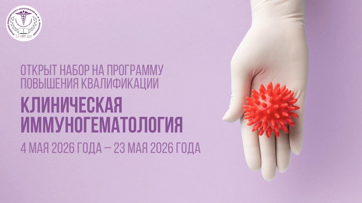«Клиническая иммуногематология» Академия медицинского образования имени Ф. И. Иноземцева приглашает на обучение врачей-трансфузиологов, врачей клинической лабораторной диагностики и специалистов, ответственных за трансфузионную терапию в медицинских организациях. Программа посвящена современным вопросам клинической иммуногематологии и позволяет систематизировать знания, необходимые для безопасного проведения иммуногематологических исследований и трансфузионной терапии в клинической практике. Сроки обучения: 4 мая 2026 года – 23 мая 2026 года Объем программы: 72 академических часа Форма обучения: очная, с применением дистанционных образовательных технологий В программе обучения: • основы клинической иммуногематологии • антигенные системы АВ0, резус и другие антигенные системы крови • клиническое значение групповых антигенов и антител • редкие и трудноопределимые группы крови • гемолитическая болезнь плода и новорожденных • иммунологические аспекты гемотрансфузионных осложнений • ор