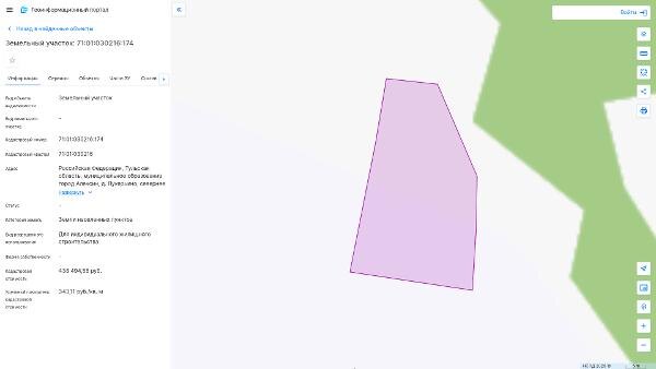 Название: Продажа земельного участка из земель населенных пунктов с кадастровым номером 71:01:030216:174, площадь 1278 кв
