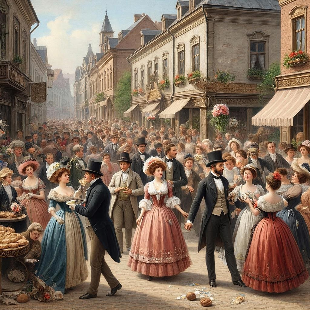 В уездном городе N происходило событие чрезвычайной важности: господин председатель земской управы, коллежский асессор Прокофий Семёнович Пупырышкин, решил устроить бал. Не простой бал, а благотворительный — «в пользу недостаточных сирот, кои, по случаю недорода овса, остались без утренней каши». Весть об этом разнеслась по городу быстрее, чем слух о том, что у купца Заплаткина в лавке завелись голландские селёдки. Все засуетились. Купчиха Матрёна Карповна, дама тучная и решительная, немедленно послала горничную к портнихе с наказом: — Скажи ей, чтоб к пятнице сшила платье с турнюром, да чтоб турнюр был такой, чтоб все ахнули. А если скажет, что дорого, — скажи, что я ей потом в долг дам, если хорошо сделает. Губернский секретарь Иван Никифорович, человек робкий и склонный к размышлениям, три дня ходил вокруг зеркала, примеряя новый фрак. Фрак был куплен на распродаже и слегка пахнул нафталином, но Иван Никифорович утешал себя мыслью, что «нафталин — это признак благородства, как у ан