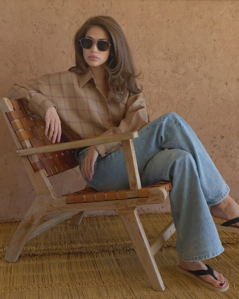 Рубашка в клетку изо льна, брюки Aladdin и топ Sahara создают мягкий, пластичный силуэт. Легкий трикотаж и свободная посадка позволяют двигаться без усилий и сохранять ощущение внутреннего баланса. Рубашка раскрывается по-новому в сочетании с джинсами Rachel и жилетом из итальянской шерсти. Образ становится более собранным, но сохраняет легкость и комфорт в каждом движении. Джинсы Rachel и льняное пальто добавляют образу глубины и мягкости. Спокойные линии и натуральные фактуры создают ощущение уюта.