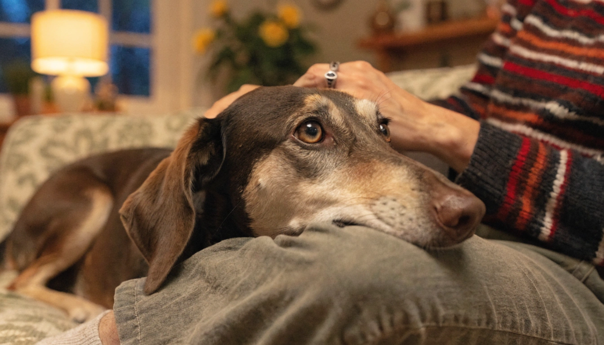 Сидишь, занимаешься своим делом — и вдруг тяжесть на колене. Пёс подошёл, положил голову и замер. Не просит гулять, не скулит, не тычет лапой. Просто лежит и смотрит снизу вверх. Момент простой, но что-то в нём есть — и многие хозяева чувствуют это, не умея объяснить. Объяснение есть. И оно многое говорит не только о собаке, но и об отношениях между вами. Первый порыв — решить, что пёс чего-то хочет. Гулять, есть, играть. Но если внимательно посмотреть на всё тело, а не только на голову — становится понятно: ничего он не просит. Тело расслаблено, хвост в спокойном положении, дыхание ровное. Он просто пришёл побыть рядом. Собаки не умеют обнимать. У них нет рук. Но у них есть вес — и они его используют. Голова на колене, бок прижат к ноге, лапа на ступне — всё это способы физически обозначить контакт. Сказать: я здесь, ты мой человек, мне с тобой хорошо. Это поведение чаще встречается у собак с устойчивой привязанностью. Тревожные псы тоже ищут контакт, но иначе — они скулят, ходят круг