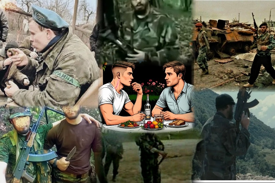 -Ну и чо? С тебя пример брал вот и всё. В общем они после, как вштырились, погырчали, покхекали, поприкалывались над Вано. Один из них автомат за спину закинул ко мне медленно подошёл, остановился чуть наклонился и в глаза мне смотрит молча с ухмылочкой. А глаза… Ну нет там ничего, пусто, темнота что ли, но жуткая такая, за ухо меня взял как пацана и почти без акцента: «Ну что сын свиньи, пошли прогуляемся немножко» и второй рукой меня по голове гладит. «Ты бойся, сильнее бойся, быстро уйти не дам». А эти снова в ржач! Прикинь! Меня сначала злоба накрыла, мамка же у нас не свинья, а следом и страх, понял я куда гулять пойдём. А сопротивляться сил нет никаких, в смысле, как будто меня загипнотизировали, или заколдовали что ли, делаю, что говорят, знаю, что нельзя, а ничего не могу с собой сделать, точно, как баран покорный перед шашлыком. Встал пару шагов сделал, ну у меня по ляшкам и потекло, и тоже против воли моей, короче по-маленькому прямо в штаны!
