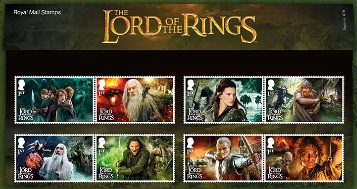 Королевская почта Великобритании 20 марта 2026 года выпустила филателистическую продукцию по фильму Властелин колец. Культовые персонажи эпической фэнтезийной трилогии запечатлены на новых марках, посвящённых 25-летию выхода «Властелина колец: Братство кольца». Восемь почтовых марок первого класса оживляют легендарные сцены кинематографического зрелища и включают элементы, раскрытые только в ультрафиолетовом свете. Надпись на Едином Кольце, написанная эльфийским шрифтом Тенгвар, отпечатана на марках скрытыми чернилами и раскрывается только при воздействии ультрафиолетового света. (Смотреть ниже в "карусели"). Дополнительно был выпущен малый лист, на котором оживают легендарные локации из фэнтезийного мира Средиземья. Марки размещены на фоне впечатляющей карты Средиземья и изображают ключевые локации из опасного путешествия главного героя Фродо Бэггинса по уничтожению Единого Кольца — от его дома в Шире до Мордора, царства Темного Лорда Саурона. Почтовые марки выпускались в наборах.