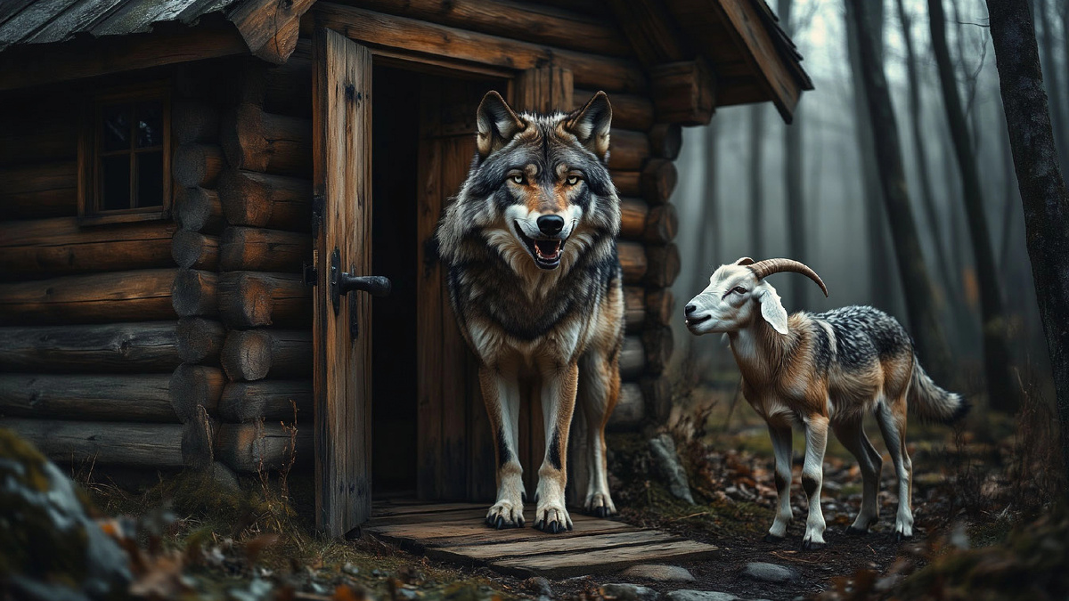 - Иллюзия безопасности. Козлята чувствуют себя защищёнными за закрытой дверью, но не понимают реальных угроз. Их доверие к «правилам» оказывается сильнее здравого смысла, когда волк подделывает голос козы.