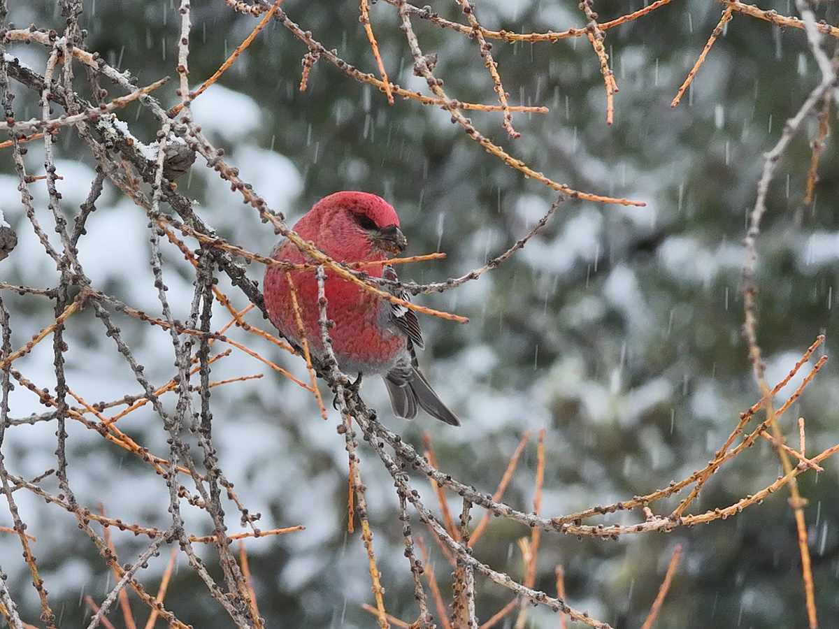 Если в эти дни вы окажетесь на Яйлинской террасе или выглянете на наледь по берегам местных речек, у вас есть отличный шанс встретить необычную птицу. Размером со скворца, но заметить её гораздо легче благодаря цвету. Самец щура выделяется на фоне снега карминно-красной головой и грудью в сочетании с серым оперением. Самка скромнее, но не менее интересна: золотисто-желтые и оранжевые оттенки на голове переходят в зеленовато-серый на спинке и боках. Размером птица примерно со скворца, но заметить её гораздо легче благодаря яркой окраске. Латинское название птицы - Pinicola enucleator - переводится как «сосновый житель, вылущивающий семена». Pinicola образовано от pinus (сосна) и colere (обитать) - щуры действительно тесно связаны с хвойными лесами, особенно с кедром и пихтой. А enucleator происходит от nucleus (ядро, зерно) и точно описывает главное занятие птицы: мощным клювом она достаёт семена из шишек и косточки из ягод. Тут скрывается интересная загадка. Учёные-этимологи предполага