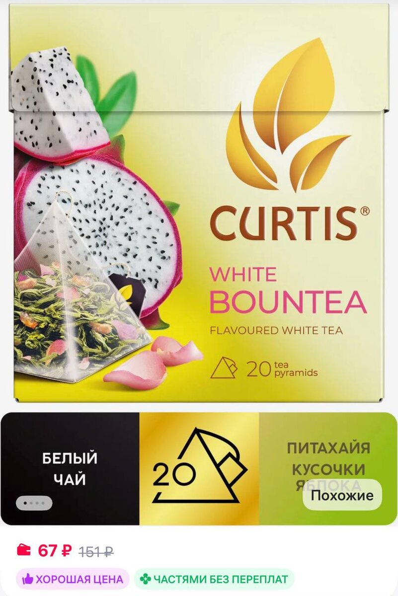 CURTIS Чай белый "White Bountea" 20 пирамидок