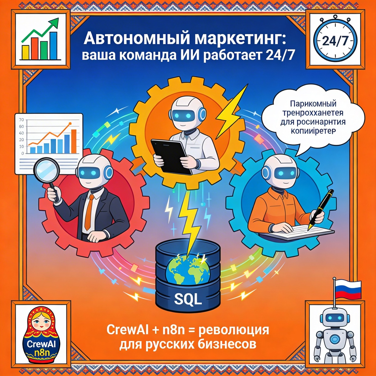 базу клиентов, другой ищет тренды в интернете, третий генерирует контент. Российские бизнесы уже получают +22% к продажам благодаря персонализированным рассылкам. Автоматизация маркетинга сокращает затраты на 40% — это реальность сегодня, а не фантастика. Готовы к своему цифровому отделу? Сайт: madbrainyai.ru Вконтакте: vk.com/madbrainyai Телеграм: https://dzen.ru/id/691aa2fcf9ec2b088dd8e53b Дзэн: https://dzen.ru/madbrainy #MadBrainyAI #CrewAI #n8n #АвтоматизацияМаркетинга #ИИДляБизнеса #РоссийскийБизнес #ЦифроваяТрансформация