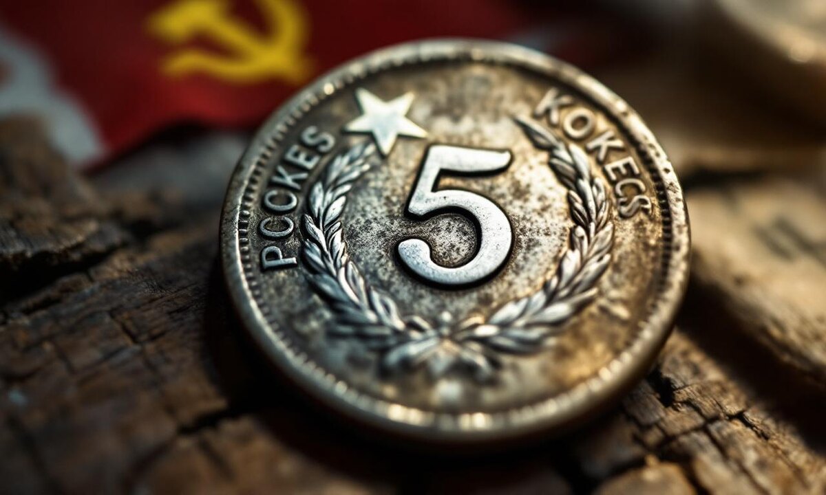 Сама монета изготовлена из бронзовой латуни. Её вес составляет 4,6 грамма, а диаметр — 24 миллиметра. На лицевой стороне большой номер «5» окружён классическим орнаментом, а на обратной — изображение дубовых веток. Эта простая, но красивая монета стала частью повседневной жизни, ею расплачивались в магазинах, передавали из рук в руки. Она была символом надежды для многих людей в сложные времена.