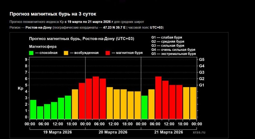 После месячного затишья на Солнце произошла мощная вспышка, которая может спровоцировать самую сильную за два месяца магнитную бурю на Земле. По прогнозам Лаборатории солнечной астрономии Института космических исследований РАН и Института солнечно-земной физики СО РАН, возмущения магнитного поля планеты ожидаются в сегодня, 19 марта. Специалисты поясняют, что причиной станет плазменное облако, выброшенное Солнцем 16 марта и движущееся к Земле. Взрыв произошел вблизи центра солнечного диска, что направило выброс точно в сторону нашей планеты. Ситуацию усугубил выброс в космос протуберанца среднего размера, находившегося в эпицентре вспышки, что дополнительно увеличило массу солнечного газа, движущегося к Земле. «Уточненный прогноз оставил без изменений интенсивность ожидаемого события, магнитные бури по-прежнему прогнозируются в диапазоне до средней и сильной — уровней G2 — G3, а вот продолжительность возмущений магнитосферы Земли возросла — теперь, с перерывами, магнитные бури слабой и
