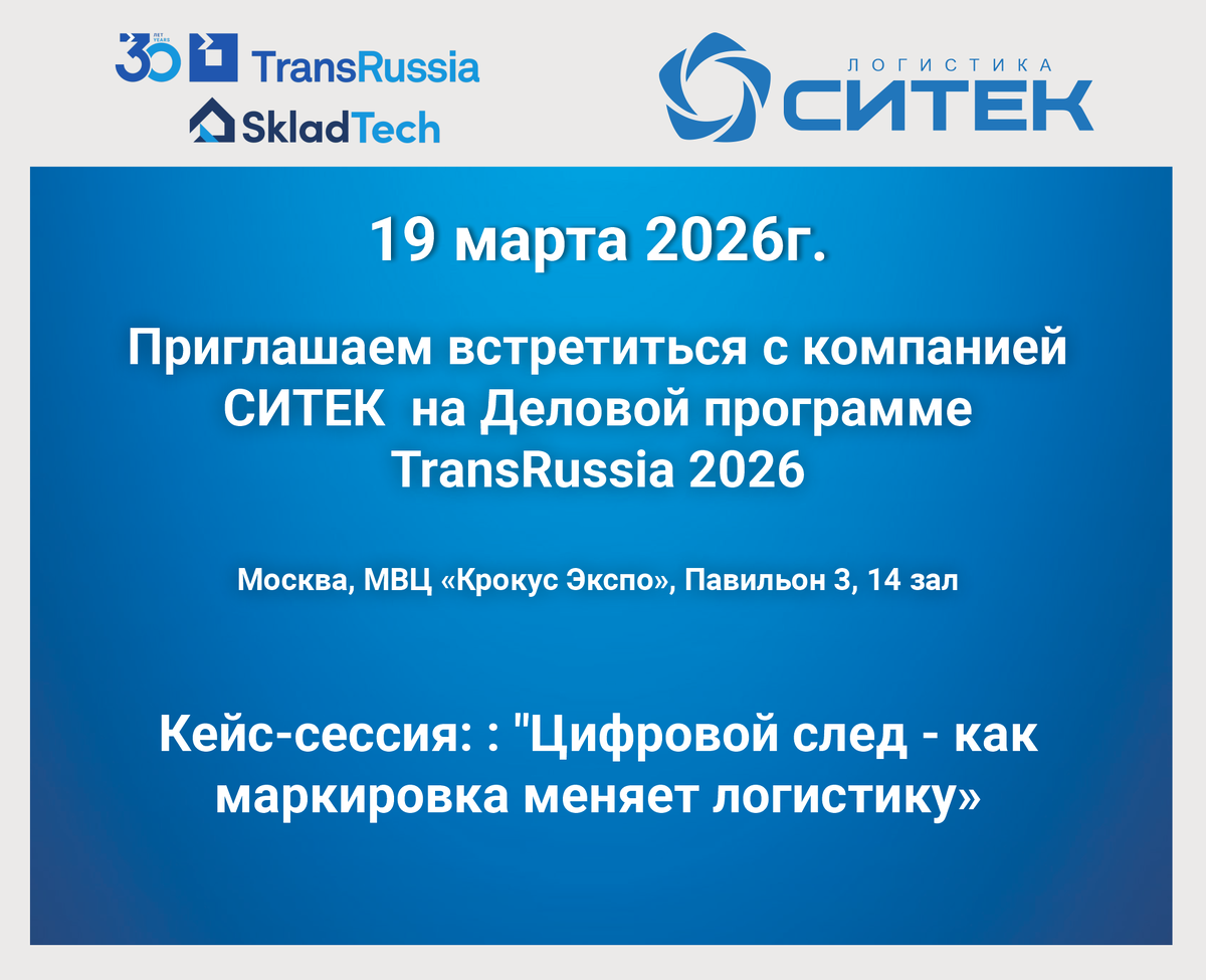 19 марта на ДИАЛОГ АРЕНЕ состоится КЕЙС-СЕССИЯ: ЦИФРОВОЙ СЛЕД - КАК МАРКИРОВКА МЕНЯЕТ ЛОГИСТИКУ. В рамках сессии эксперт СИТЕК Роман Федоров расскажет о маркировке как цифровой ДНК товара: что изменилось в логистике навсегда. Что обсудим: 🗓 Когда: 19 марта 11:00 мск 🏢 Где: МВЦ «Крокус Экспо», ДИАЛОГ АРЕНА (14 зал), ПАВИЛЬОН 3 Успевайте зарегистрироваться!