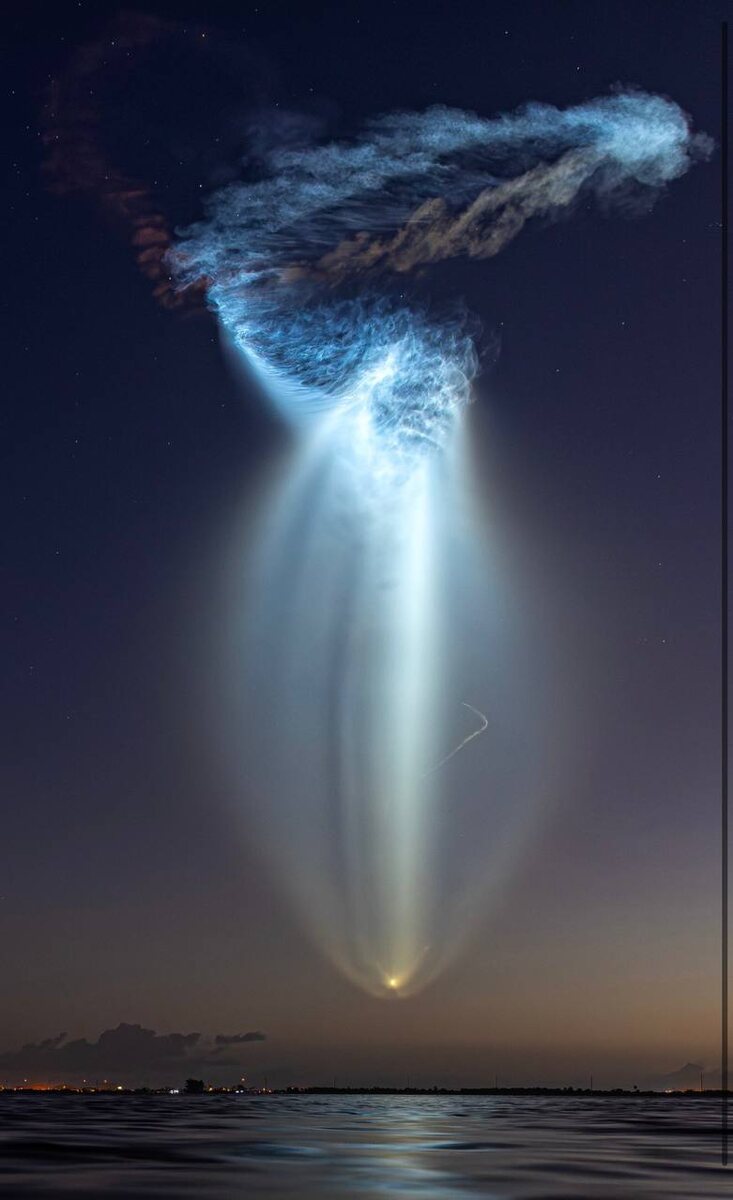 Дата: 2026-03-19 Автор снимка: Michael Seeley Даже если вы привыкли витать в облаках, такую «медузу» вы встретите нечасто. Перед вами - запуск ракеты SpaceX Falcon 9 с мыса Канаверал (Флорида), который состоялся 4 марта, всего за 52 минуты до восхода солнца. Как получилось это свечение? Фотограф стоял ещё в темноте, но вторая ступень ракеты поднялась так высоко, что её выхлопной шлейф (состоящий в основном из водяного пара и углекислого газа) поймал первые лучи восходящего солнца. Эта комбинация света и тени, возможная только на рассвете или закате, создала эффект светящегося облака. Почему «медуза»? Причудливая форма расширяющегося выхлопа на фоне тёмного неба действительно напоминает морское существо со щупальцами. Ракета при этом уходит в космос, следуя кривизне Земли - иллюзия, будто она падает вниз, обманчива. 👩🚀 Подписаться на канал. #SpaceX #Falcon9 #запускракеты #космическаямедуза #мысКанаверал #Флорида #рассвет #астрофотография #световойэффект #сумеречноеявление #косм